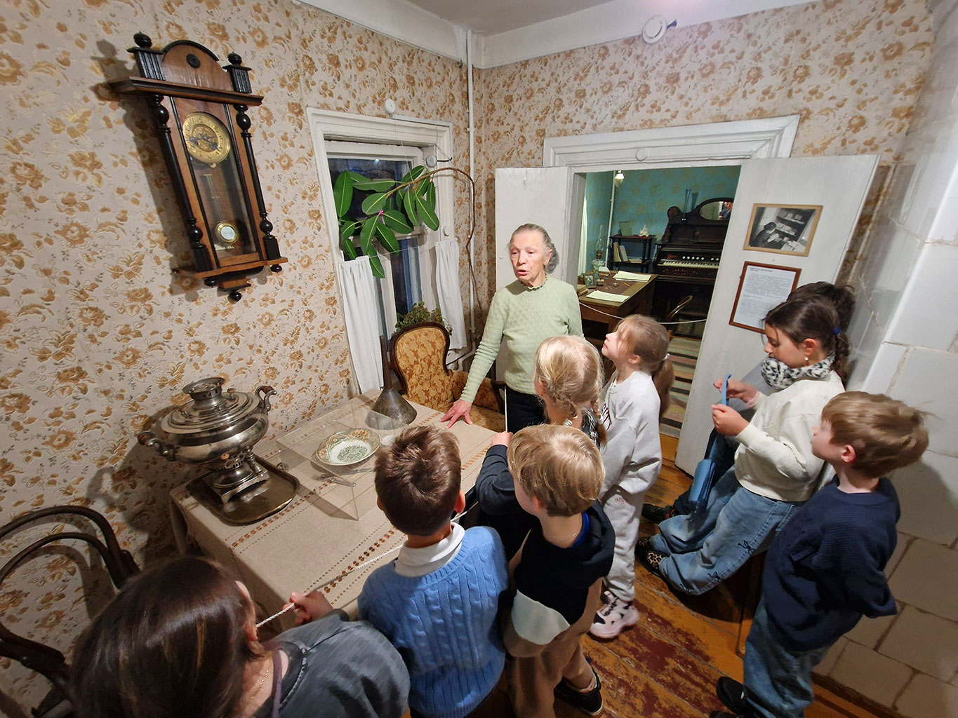 Следующим в нашей программе был дом-музей, в котором жил Константин Эдуардович и где были сделаны многие из его открытий. Здесь мы не только будто бы перенеслись в прошлое, оказавшись в настоящем деревянном доме, построенном в XIX веке, где учёный прожил 29 лет, но и узнали много нового из биографии этого выдающегося Человека. Он проучился 4 года в гимназии. А после её окончания достиг высокого уровня познания в науках путём самообразования, сдал экзамен на звание народного учителя и стал блистательно преподавать математику и физику. Интересно было увидеть станки, призванные облегчить труд изобретателя; модели дирижаблей и других воздухоплавательных аппаратов; посмотреть на велосипед и коньки, на которых Циолковский любил ездить по городу; библиотеку, в которой сохранились книги любимых учёным авторов: Жюля Верна, Герберта Уэлса и других писателей-фантастов. И сам Константин Эдуардович был автором научно-фантастических рассказов и повестей об освоении космического пространства людьми.