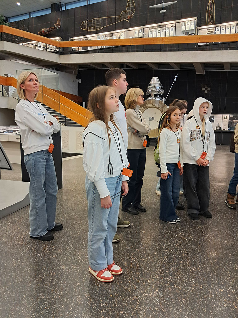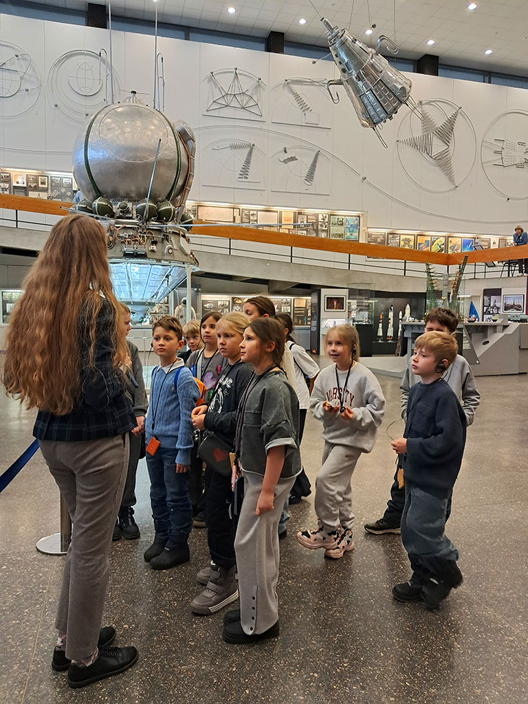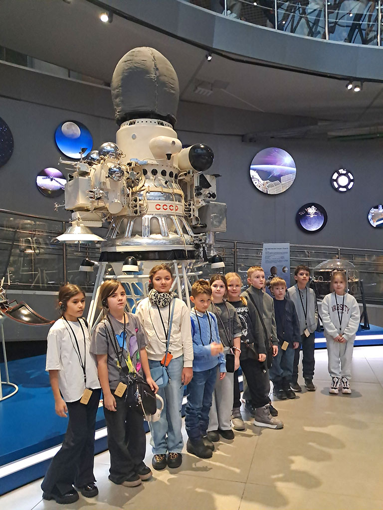 Несмотря на пасмурную погоду, настроение у всех было отличным! Во время более 3-х часового пути до места назначения ребята общались; во время остановок – лакомились, с удовольствием угощая всех, вкусностями, которые собрали в дорогу родители и обсуждали ожидающие их приключения. Они начались после обзорной экскурсии по городу, когда мы побывали в лучшем в мире Музее космонавтики. Он носит имя К.Э. Циолковского – русского и советского учёного-самоучки, основоположника современной космонавтики. Благодаря уникальным экспозициям музея и познавательной программе в его Планетарии, мы смогли попытаться представить себе то, что испытывали космонавты, побывавшие в Космосе. Знания из истории авиации, воздухоплавания, ракетно-космической техники, полученные во время экскурсии, ребята смогут использовать на уроках.