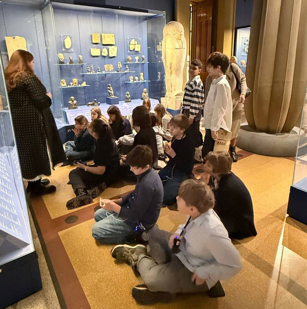 Пятиклассники, оказавшись в зале Древнего Египта, в первую очередь удивились тому, что, практически все экспонаты подлинные. В то время как в большинстве экспозиций этого музея представлены копии. И, действительно, будто бы оказавшись в Древнем Египте, ребята с интересом слушали экскурсовода и с большим интересом рассматривали предметы из далёкого прошлого.