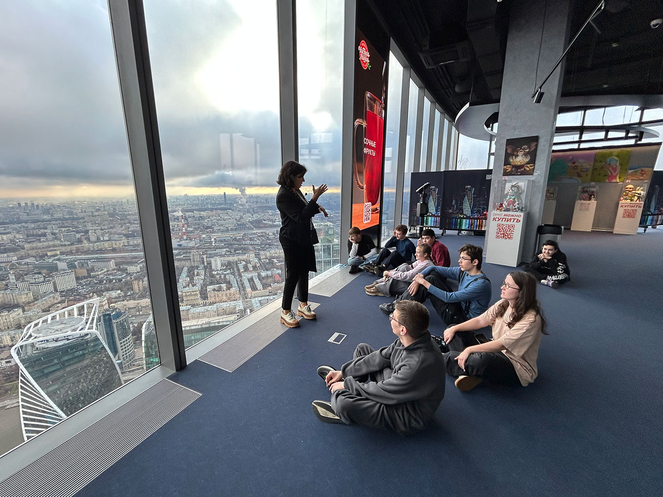 Тема экскурсии «Небоскрёбы — чудеса инженерии» — это не просто погружение в удивительный мир высотных зданий. Любуясь Москвой с высоты 89 этажа Башни «Федерация. Восток», ребята узнали: