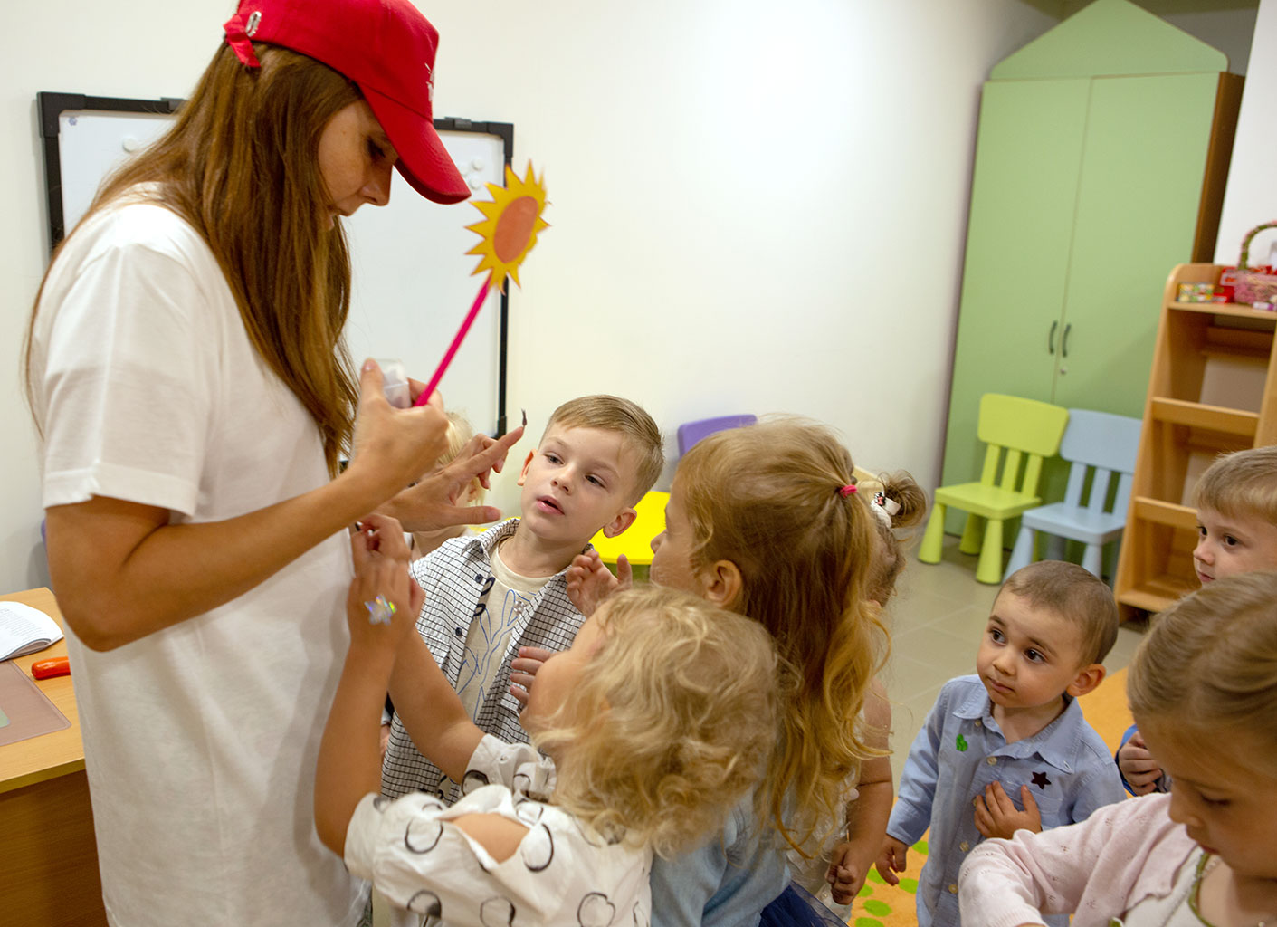 В этом году в «Жучке» появились новые ребята. Для них и их родителей были представлены педагоги ДЦР. Затем Ирина Николаевна, поздравив с началом учебного года и рассказав о традициях «Жуковки», одной из которых является преемственность и дружба ребят разного возраста, пожелала интересных и успешных занятий на пути подготовки к школе. Из этого рассказа и детям, и взрослым стало понятно, что предстоящая учёба должна быть очень интересной. И, как доказательство тому, началось замечательное игровое путешествие в Страну Знаний. Ребятам очень понравились герои этой игры: Ах – шутник и хохотун, который во всём ищет хорошее, доброе и радостное, и Ох – отчаянный ворчун, который во всём сомневается. Но Оху долго ворчать не пришлось, потому что его быстро развеселили шуточные загадки и быстрые отгадки ребят. Он перестал спорить и честно признался в своей лени. Чтобы побороть её, Ах пригласил Оха отправиться на остров Знаний, до которого нужно было «плыть по морю». Затем, выполняя развивающие задания, заслужить право открыть волшебный сундучок и вместе с ребятами отвечать на вопросы, чтобы попасть на чудесный остров. Увлечённые ответами на математические вопросы, малыши даже не заметили, как были вовлечены в танцевальную игру «Найди пару своей цифре». От математических поисков перешли к ботаническим – «Найди овощ, найди фрукт». В следующей интерактивной игре «Вежливые слова» все наперебой выкрикивали приветствия и благодарности, разыгрывали различные сценки. А Оху, который пожаловался, что ничего этого не знает, посоветовали поучиться в Стране Знаний. Пришлось ему расстаться с ленью, подружиться с Ахом и ребятами. И они все вместе начали осваивать пространство «Жучка», где в каждой аудитории ожидали познавательные сюрпризы в виде игровых занятий.