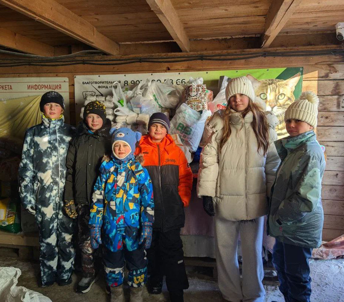 3 февраля группа пятиклассников: Александр, Мария, Марьяна, Омар и Ярослав во главе с Шевяковой Натальей Николаевной, советником директора Гимназии по воспитанию, отправились в приют для животных «ГАВ» в Малые Вязёмы. К Александру присоединились члены его семьи: мама и младший брат, Алексей, ученик 2-го класса, которые хотели взять домой маленького щеночка. Эта делегация школы привезла братьям нашим меньшим 459 кг круп, сухие корма и лекарства, закупленные на часть средств, собранных во время предновогодней Благотворительной ярмарки в декабре 2025 года. После разгрузки привезенного, гости отправились на небольшую экскурсию, во время которой встретили и старых знакомых – шефство над этим приютом, начавшееся много лет назад, для нашей школы стало традиционным. Сейчас здесь находится более 400 собак, кошки, и даже чёрный кабан. При появлении новых людей собаки начали вилять хвостами, лаять, становиться на задние лапы, привлекая внимание. Глядя в глаза этим животным, мы увидели в них надежду, надежду на то, что они кому-то нужны. В этот раз ребята не встретили щенков. Собакам, содержащимся в приюте, от 5 до 9 лет.