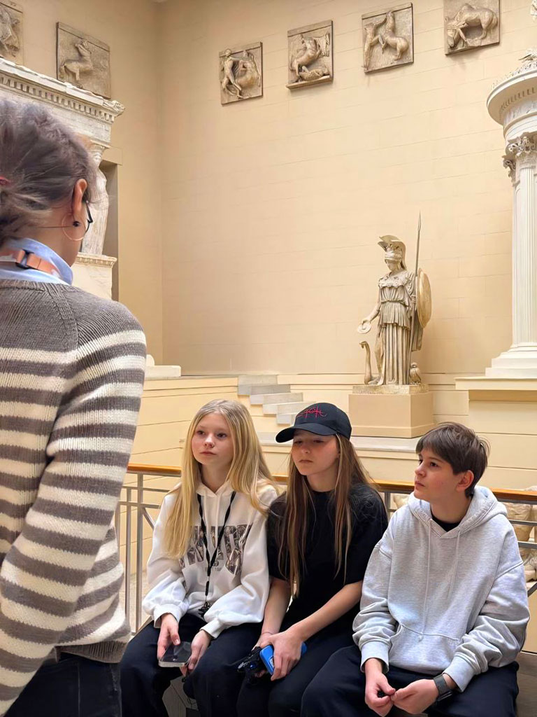 Всем известно, что «повторение – мать учения». В очередной раз убедиться в этом могли шестиклассники, которые отправились на экскурсию в МГМИИ им. А.С. Пушкина. Экскурсовод встретила их в зале культуры и искусства Древней Греции. С этой древней цивилизацией ребята знакомились на уроках истории в прошлом учебном году и вспоминали о ней в начале этого учебного года, начиная изучать историю Средних веков. К радости своей и Елены Александровны, психолога Гимназии, сопровождавшей ребят, отвечали практически на все вопросы, которые им задавали и заработали заслуженные дополнительные оценки по истории.