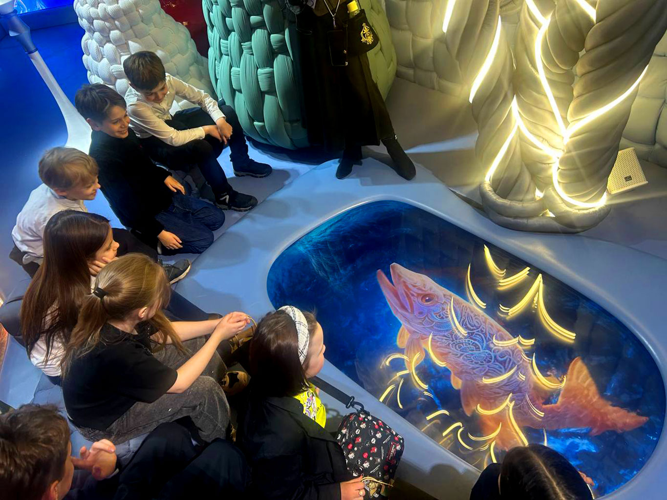 Наши третьеклассники – очень любознательные ребята! Поэтому на выставке «Книга сказок» они не только вспомнили русские народные сказки, но и стали их активными участниками: разгадывали загадки от Золотой Рыбки; увидели себя в золотом блюдечке; дружно «вытянули» репку; посидели в санях Снежной Королевы; познакомились с 12 Месяцами. А во время посещения экспозиции, посвящённой национальным регионам России, узнали, чем они славятся: Пятигорск – минеральной водой; Вологда – всемирно известными кружевами; Калининград – янтарём.